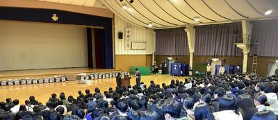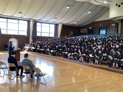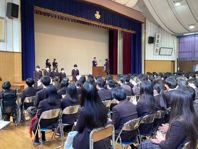 生徒一人ひとりが以前配布された記念誌など読み返したりなどして、本校生徒としての誇りを持ってほしいとお話しされました。