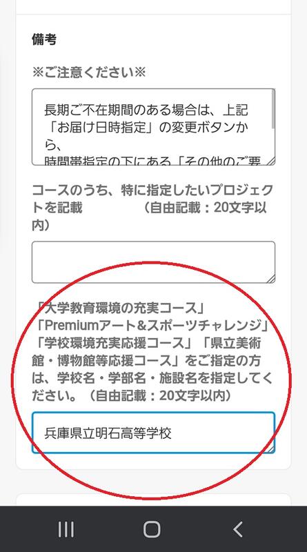 ①ふるさとひょうご寄附金「寄付申出書」を学校に郵送かFAXで、提出していただく。(A41枚、約10分で記入できます)