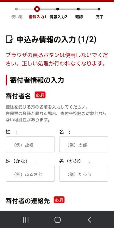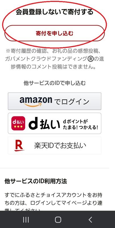 ②スマホやPCを使って、「楽天ふるさと納税」または「ふるさとチョイス」のサイトから寄附していただく。(約10分で入力できます)