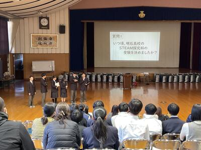 学校長の挨拶のあと、STEAM探究科担当者から、