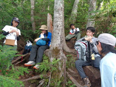 山中でなんと明高ワンダーフォーゲル部の大先輩とも遭遇。すごく懐かしがられました。先輩、ワンゲル部は今も元気に活動を続けております!またどこかの山でお会いしましょう。