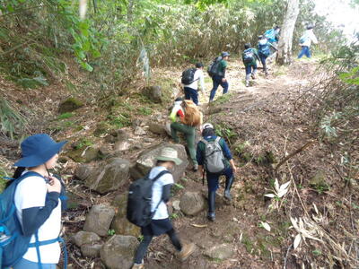 前回に続いて好天に恵まれ、今回もとても気持ちの良い山行でした。初めて経験する部員がほとんどで、400階段に悲鳴を上げ、須磨アルプスに歓声を上げ、とてもとても賑やかな一団となりました。