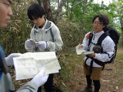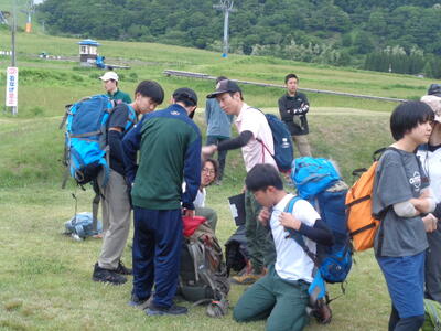 入部したばかりの1年生が多い我々は、無理をせず丁寧に時間をかけて地図読みをしながらの山行でした。初めて氷ノ山を上るものがほとんどでした。前日の雨でぬかるんだ場所も多く、また冬場の雪の重みでねじれてしまったはしごで降りる場所もあり、なかなかスリルもありました。地図読みをしながらで時間はかかりましたがどの学校も全員無事下山。今度会うのは来週の県大会だね。お互いエールを送りながらの解散となりました。さて、いよいよ来週は2泊3日で県大会。明高ワンゲル部の健闘を期待しています。お疲れさまでした。