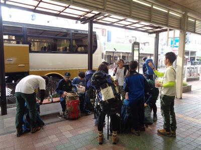 1日目はまずは移動、大きなザックを背負った大人数が電車を乗り継ぎバスに乗っての移動するのはなかなか骨が折れます。周囲の乗客にも気を使いながらの移動です。昼過ぎにはキャンプ場に到着。高度が高いせいかちょっと涼しい!!!そして蚊がいない!!!