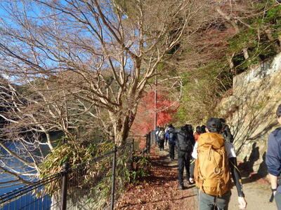 最初は気温の低さが心配でしたが、登り始めるとすぐに暑くなりみんな上着を脱ぐことに。所々紅葉も残っており色鮮やかな木々が目を楽しませてくれます。また足元の色とりどりの落ち葉もの重なりが印象派の絵画のように美しく、飽きることがありません。