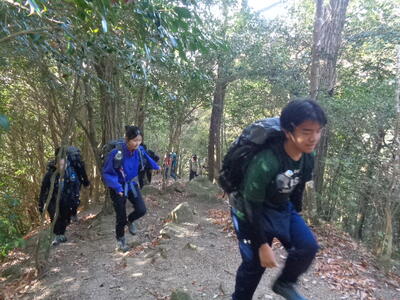 青谷道を下山して摩耶駅で解散。お疲れ様でした。加古西の皆さん、また一緒に行きましょう。今年最後の登山行動。生徒は10キロ程度の負荷も背負っていてただのハイキングとはいかない部分もありますが、天候にも恵まれ気持ちよく今年の一年を締めくくることができました。来年はどこにいきましょう。六甲山の氷瀑は凍るのか?京都の愛宕山に雪はあるのか?いろいろ楽しみにしつつ新年を迎えましょう。来年もよろしくな。パオーン!