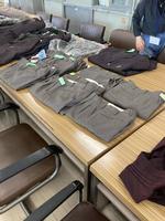 PTA役員・協力員で仕分けし、生徒テントで手渡ししました。