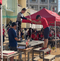 学年種目(1年:何人何脚、2年:タイフーン競争、3年:いかだ流し)では、これまでの練習の成果を十分に発揮する