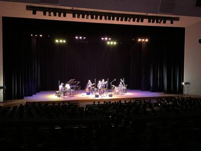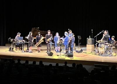 宮崎さんの快活なトークとともにジャズの歴史についてもご紹介いただきました。楽曲の演奏やジャズアレンジなど素晴らしい演奏を拝聴しました。本校校歌のジャズアレンジも演奏していただきました。