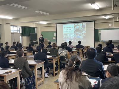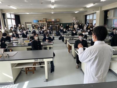 中学3年生と保護者の方を対象に、本校「理数探究類型」についての説明会を実施しました。その後、実験講座を体験、個別相談にもお答えしました。