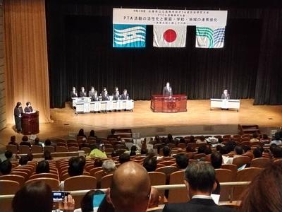 12月3日(土)、和田山ジュピターホールにおいてPTCA全県研究大会が開催され、校長とPTA本部役員が参加しました。開会行事に続いて、県立芸術文化観光専門職大学の平田オリザ学長による「新しい学力観、新しい学校観-大学入試改革から見る家庭・地域の役割-」と題した記念講演があり、学校及び家庭が連携してこれからの大学入試に求められる学力を備えた生徒の指導・対応方法等についてご講演いただき、非常に参考になりました。
