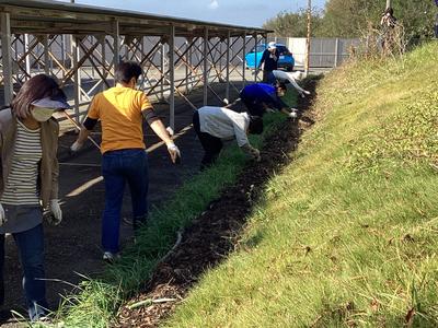 11月3日(木)、PTA研修委員の方々に参加していただき、放送部員が作品制作の一環として園芸活動を行いました。テニスコート前自転車置き場付近の傾斜部分にチューリップの球根植えつけた後、以前から植えてあったサツマイモを掘り起こして収穫、畝を整えて大根の種をまきました。作業しつつその様子を放送部員が撮影し、PTAの方にインタビューもさせていただきました。天候に恵まれ、作業していると汗ばむほどの陽気でした。参加していただきましたPTA研修委員様、ありがとうございました。チューリップが咲くのが待ち遠しいです。