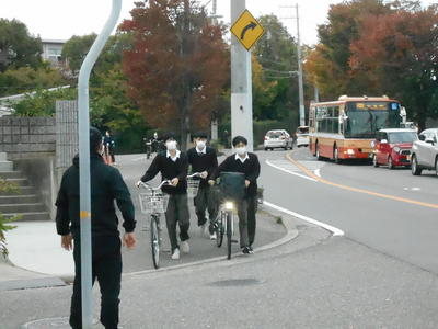 11月7日(月)登下校時、PTA・明石警察・明石交通安全協会・地域と連携し、挨拶運動・交通安全指導を行いました。交通マナーをしっかり守り、大きな声で挨拶する生徒たちの姿に、関係者の方々から「明高生は本当にいい生徒たちばかりですね」とお褒めの言葉をいただきました。ご協力いただいた関係者の皆様、ありがとうございました。
