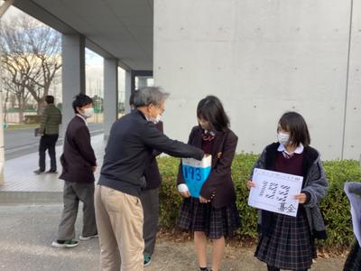 12月14日、登校時に生徒会メンバーが本校生徒昇降口前に立ち、「193募金」への協力を呼びかけました。「193募金」は、難病と闘う山本育海さんが、2015年に高校の同級生たちと始めた募金活動で、難病研究が進むよう京都大学iPS細胞研究所へ寄付するもので、毎年、明石市の各高校が中心となって実施しています。寒い風が吹く中でしたが、生徒会メンバーが懸命に呼びかけた結果、多くの募金が集まりました。難病研究が進み、多くの患者さんの命が救われることを願っています。