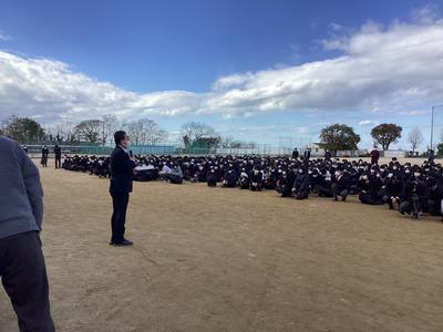 12月14日(水)、震度6弱の地震を想定した避難訓練を実施しました。サイレンの後、緊急放送の指示などを確認し全校生が避難経路を通ってグランドへ移動しました。グランドでは各クラスが素早く整列し委員長が点呼確認、報告しました。今年度は、事前に指示されていた生徒数名がクラス列に並ばす救護所に移動し、その不在生徒の確認までを訓練としました。訓練を通して一人ひとりの防災意識を高めることができました。