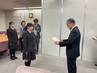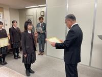 結果、校章デザイン・校内カフェのシンボルマーク・体操服の胸章として3案が採用され、昨年末、感謝状贈呈式に出席させていただきました。