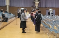 卒業式後に保護者代表よりお世話になった先生方に謝辞を伝え、花束贈呈を行いました。