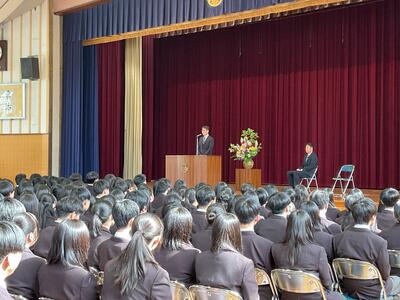 2年は新しいクラスで周囲との関係を広げてください。3年は、進路に向けて目の前のことに全力で取り組んでください。昨日入学したばかりの1年は、恵まれた環境の中で努力を重ねていってください。