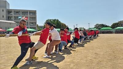 体育大会当日、PTA競技として綱引きをおこないました。