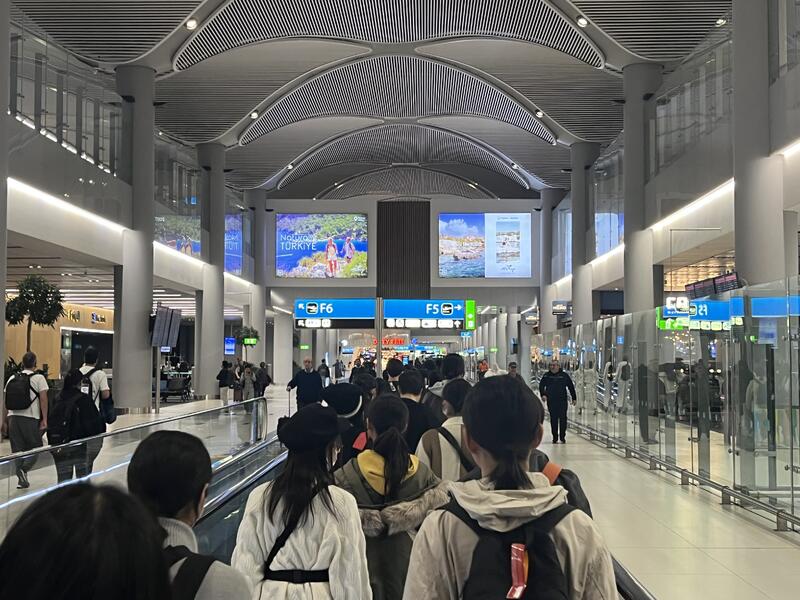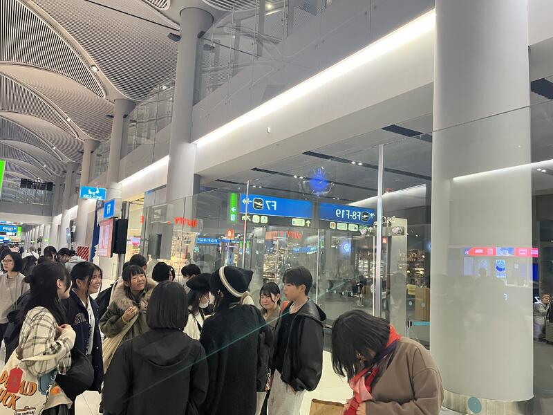 乗り継ぎ便までもう少し時間があります。生徒たちは、まだまだ元気そうです。お買い物に行くようですね。