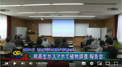 3月21日(日)明石公園の緑の相談所研修室で、2年生理数探究類型生物班の課題研究の発表会が市民向けに開催されました。この研究は、昨年7月に明高生が市民に呼びかけて始まったもので、明高生、市民、教員が共同して、1291枚の明石公園内の植物の写真を撮影し、282種類の植物を同定しました。