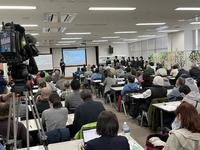 4月3日(日)、13:30~ アスピア明石北館7階 ウィズ明石704室にて、「かけがえのない自然を活かそう!「明石公園の未来を考える シンポジウム」が開催されました。160人の市民が参加し、会場に入りきれず立ち見や廊下にまで参加者があふれるなか、明石高校理数探究類型の生徒7人が、課題研究の成果を発表しました。