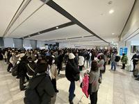 新千歳空港にて、飛行機の遅れが発生しましたが、無事に飛び立つことができました。