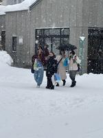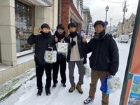 今日の空は雲で覆われて、お昼頃から吹雪始めてきました。生徒たちはホテルを出発し、小樽へ観光に向かいました。道路状況を考慮し、予定よりも早く空港に出発することとなり、観光の時間が短くなってしまいましたが、生徒たちは小樽を満喫したようです。