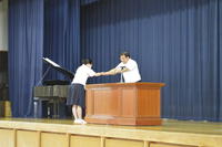 吹奏楽部による伴奏で校歌・生徒歌を歌い、表彰伝達式を行いました。