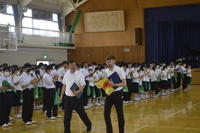 新しいALTの先生の着任式、夏休み中の各部活動での表彰状伝達式も行われました。