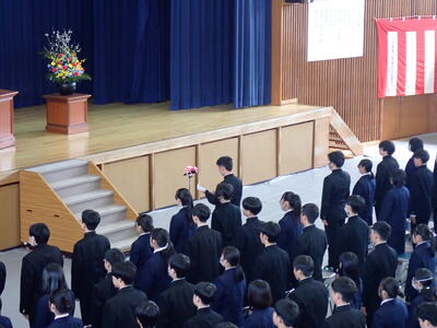最後に、吹奏楽部の演奏で校歌、生徒歌を歌い、卒業生を送り出しました。
