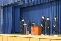 在校生代表の送辞では部活動、生徒会活動等で卒業生に導かれ頑張れたことの感謝が、答辞では卒業生が不安のうちに入学し、様々な困難もあったが先生、家族、友の支えで卒業し、希望の進路への道が拓けたことを切々と述べました。
