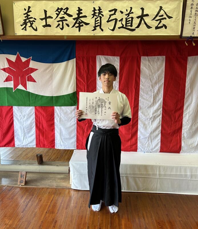 予選4つ矢皆中、順位決定射詰で2本連続的中。一般の方々を相手に大健闘しました。立派です。