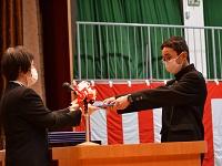 3月3日(木)、「第33回卒業証書授与式」が行われました。新型コロナウィルスまん延防止のため、小・中学部の児童生徒の皆さんの出席は叶わなかったものの、保護者の皆様や高等部の在校生にあたたかく見守られて、3年生9名が卒業していきました。