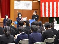 2月9日(金)  生徒会役員選挙が行われました。1月26日の立候補受付から投票日まで、新しい生徒会役員を選ぶための活動が続きました。今回は2年生が3名、1年生が2名立候補しました。各立候補者は、ポスターの掲示、生徒昇降口でのあいさつ運動、教室を巡回しての自己アピール、立会演説会などを通じて各立候補者への投票を呼びかけました。今回選ばれた新役員は、1年間生徒会のために活躍してくれることと思います。