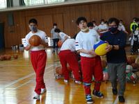 4月27日(火)の午前、体育館で新入生歓迎行事を行いました。各クラス、自己紹介やクラスPRの後、縦割りグループでクイズ大会やゲームをしました。「高等部の先生についてのクイズ」では、問題が出されると、各グループ話し合いをして、2つの選択肢から答えを絞りました。正解発表すると「やったー!」「わー!」など歓声が沸きました。「ボール取りゲーム」は、かごの中や敵地からボールを自分の陣地に集めるゲームで、回を重ねるごとに白熱した対戦となりました。最後に全員で二手に分かれ、「ドッチビー」をしました。終了時間の合図がなるまで、逃げきったり、果敢にソフトディスクを受けたりする生徒が多く見られました。この行事を経て、高1から高3までの生徒の交流が深まりました。