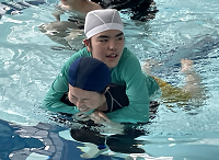 一覧へ 1. 授業風景(水泳学習) 投稿日時: 2024/07/02 高等部 赤穂市民総合体育館をお借りして、2回目の水泳学習がありました。アップテンポの曲で水中ダンスを踊っているグループや、水中じゃんけんをしたり、浮島運びレースをしているグループもありました。梅雨に入り、蒸し暑い日が続いているので、生徒からは気持ちよかったとの感想が多かったです。歓声のあがる楽しいひと時でした。
