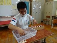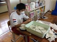 一覧へ 1. 授業風景 5月① 投稿日時: 2022/05/24 高等部 5月も半ばを過ぎ、新入生も落ち着いて生活し授業を受けられるようになってきました。今日は作業学習(軽作業班)の様子をお伝えします。