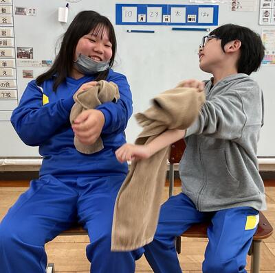 リモートで赤穂特別支援学校の下級生とつながりました。「楽しんでるよ~」とみんな大きな声で伝えていました。
