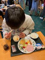 中学部修学旅行‼ 2日目の朝です。たくさん就寝して、みんな元気です。ホテルの朝食はバイキングでした。みんなバランスよくメニューから選びました。おいしそうな朝食がテーブルに並びました。お世話になったホテルの方々にごあいさつして、いまから名古屋港水族館にいきます。イルカショーを見ます。楽しみです。