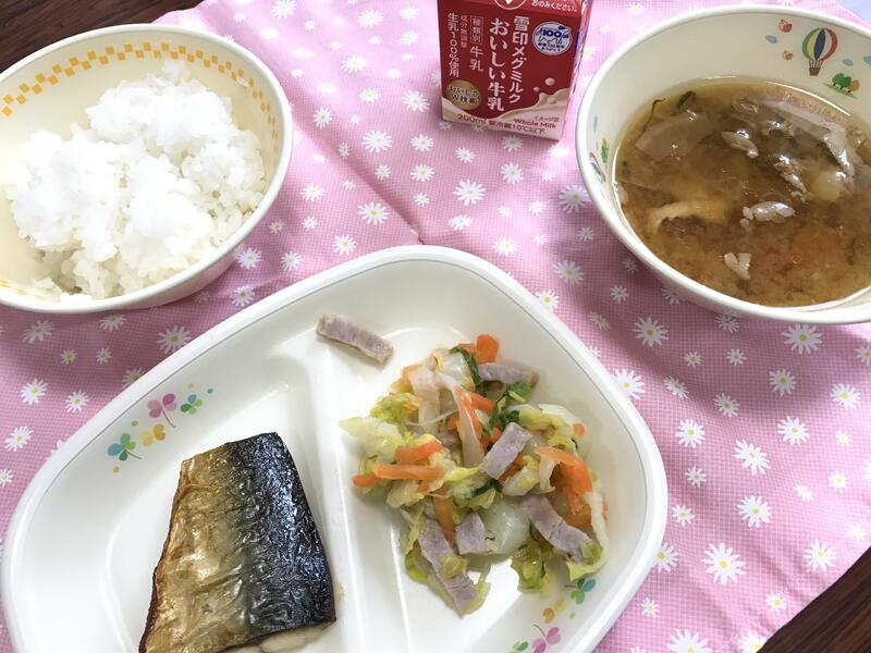 ごはん ぎゅうにゅう さばのしおやき とんじる はくさいのさっぱりあえ