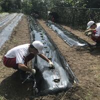 販売実習に合わせて、畝ごとに時期をずらして植えています。