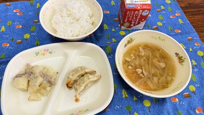 今日は「ぶたもやしスープ」「ぎょうざ」「ジャーマンポテト」と、ごはんに合うおかずがそろった満足感のある献立でした。スープはもやしやキャベツの食感がよく、しょうがとにんにくの風味で体が温まります。ぎょうざは皮がもちっとしていて、具材のうまみがしっかり感じられました。ジャーマンポテトはじゃがいもの甘みとベーコンの香ばしさが絶妙で、彩りもきれいです。修学旅行で給食を食べられなかった分、久しぶりの給食はやっぱり安心できる味だと感じました。