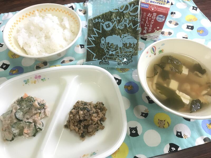 本日の献立は、手巻きずしを中心に、子どもたちが楽しみながら食事できる工夫が感じられました。すしごはんは程よい酸味で食欲をそそり、ツナサラダはノンエッグマヨネーズであっさりと仕上がり、野菜の彩りも鮮やかでした。すまし汁は豆腐やかまぼこの旨味に、えのきと三つ葉の香りが加わり、心温まる味わいです。納豆と豚ミンチの味噌風味もご飯に良く合い、栄養バランスも整っています。自分で巻く楽しさが食育につながる、工夫された献立だと感じました。