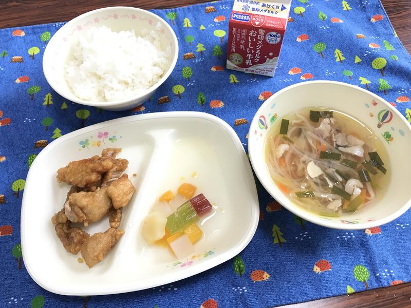 今日の給食は、さっぱりした味つけが多く、どれも食べやすい献立でした。とくに人気メニューの「とりにくのレモンづけ」は、ほどよい酸味でごはんがよく進みました。はるさめスープは、たけのこやにらの食感が楽しく、栄養もしっかりとれます。デザートのナタデココやカクテルゼリーは、彩りがよく食後の楽しみになりました。季節の食材やバランスを考えた、体に優しい給食だと感じました。毎日おいしい給食を作ってくださる調理員さんに感謝したいですね。