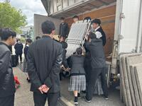 土曜日に、部員総出で楽器や荷物のトラック積み込みを行いました。2・3年生の指示のもと、1年生もお手伝いをしました。3枚目の写真の楽器を積み込む際には、全体に緊張感が走りました…。無事に積み込むことができ、拍手が起こりました!