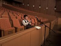 会場に着き、楽器の準備ができた後、リハーサルを開始しました。椅子の位置を決めたり、キャストの立ち位置、照明の当たり具合など細かなところチェックしながら、リハーサルを行いました。