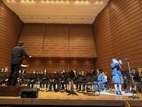 当日の昼頃からは、OBOGさんの方々にも入っていただき、リハーサルを行いました。皆さん本当に楽しそうに演奏をされていました。2枚目は、曲席から指示を出すかっこいい部長です。3枚目は、恐竜になった部長です。部長は一生懸命にみんなを引っ張っていき、演奏会を成功へと導きました。よく頑張りました。そして、部員みんなもよく頑張りました。