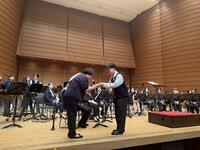 3枚目の写真では、リハーサルを終えた後、吹奏楽恒例のバッジの授与が行われました。バッジを受け取り、3年生たちは嬉しそうにしていました。