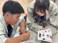 採集後は教室に戻り、捕まえた昆虫の分類活動を実施。体の特徴や羽の形、脚の数などを観察しながら、図鑑を使って種類を調べました。